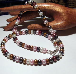 Ett enkelt halsband,mångfärgade sötvattens pärlor med mycket vacker lyster.